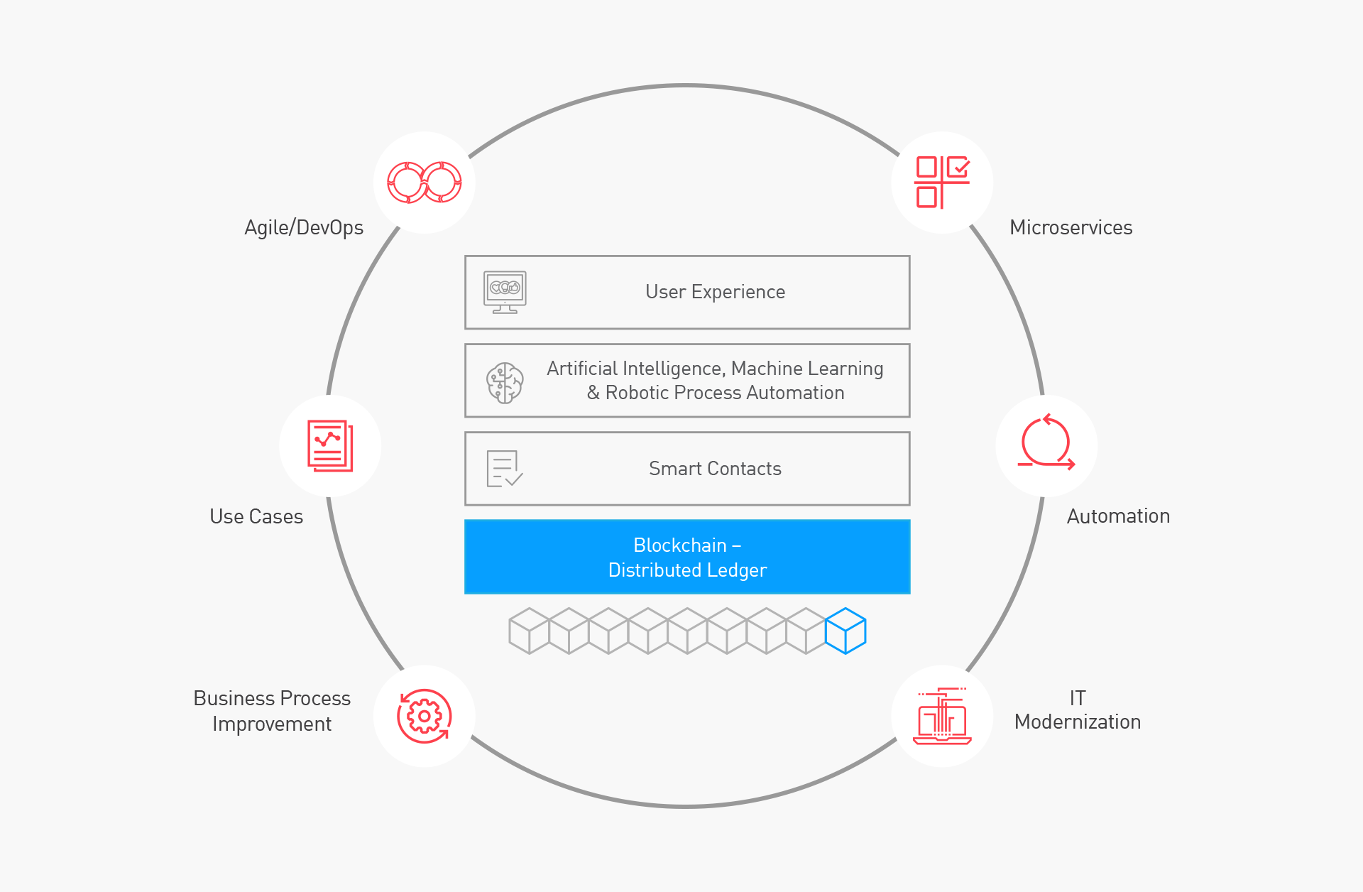 - Increasing Operational Efficiency – such as identity management, benefits management, contracting and procurement, asset tracking, trade and regulatory compliance